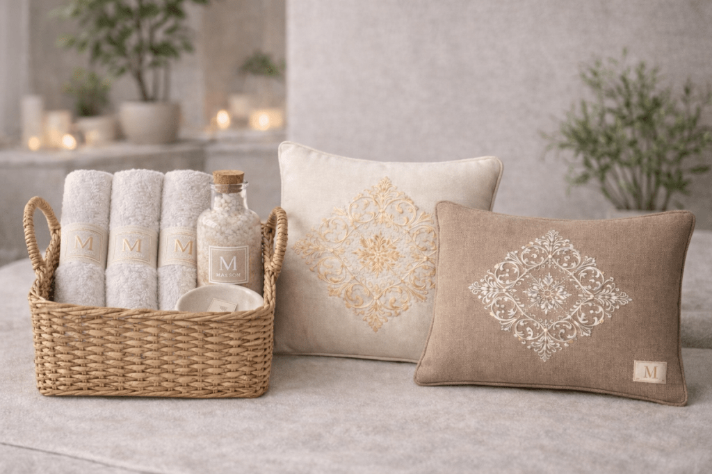 Il Set Accoglienza Soft Maison du Mar è una composizione artigianale pensata per camere, bagni e spazi wellness di casa, hotel e B&B. Il set unisce tessili e accessori coordinati, con palette neutra e decorazioni realizzate a mano, per creare un’atmosfera elegante, pulita e accogliente.