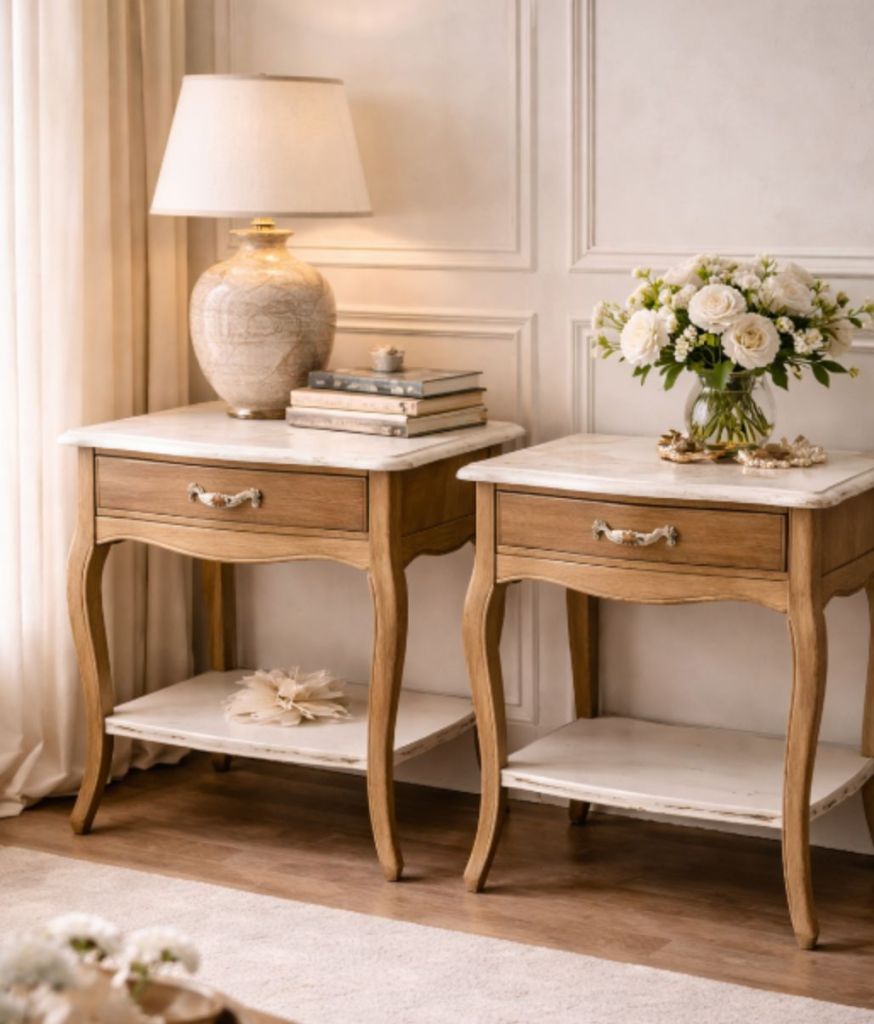 Coppia di comodini “Talita” – legno pieno, restauro artigianale