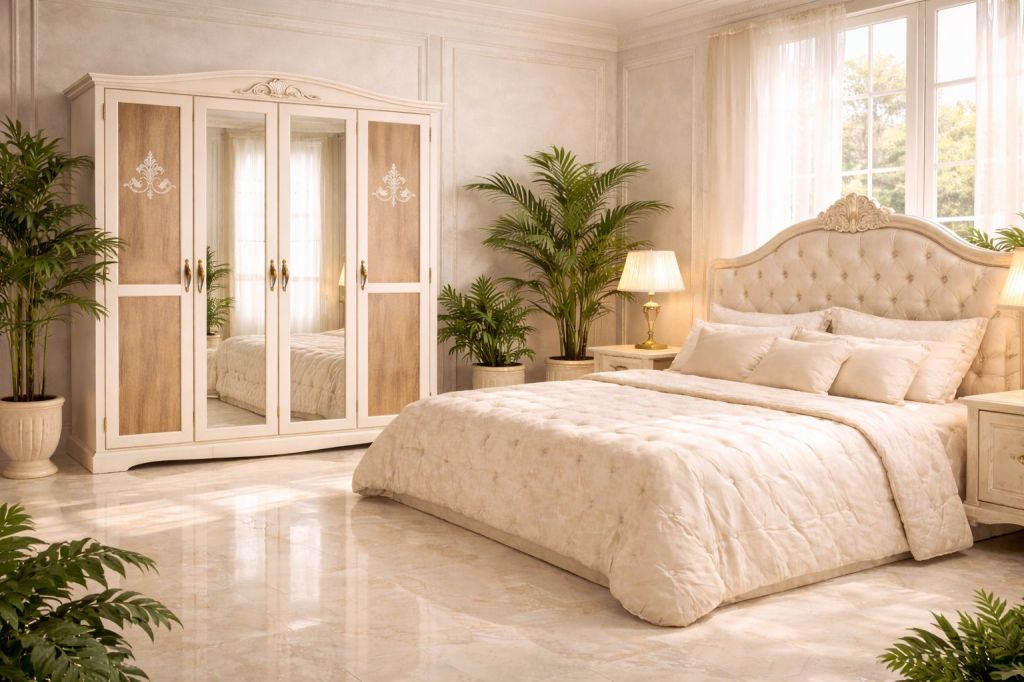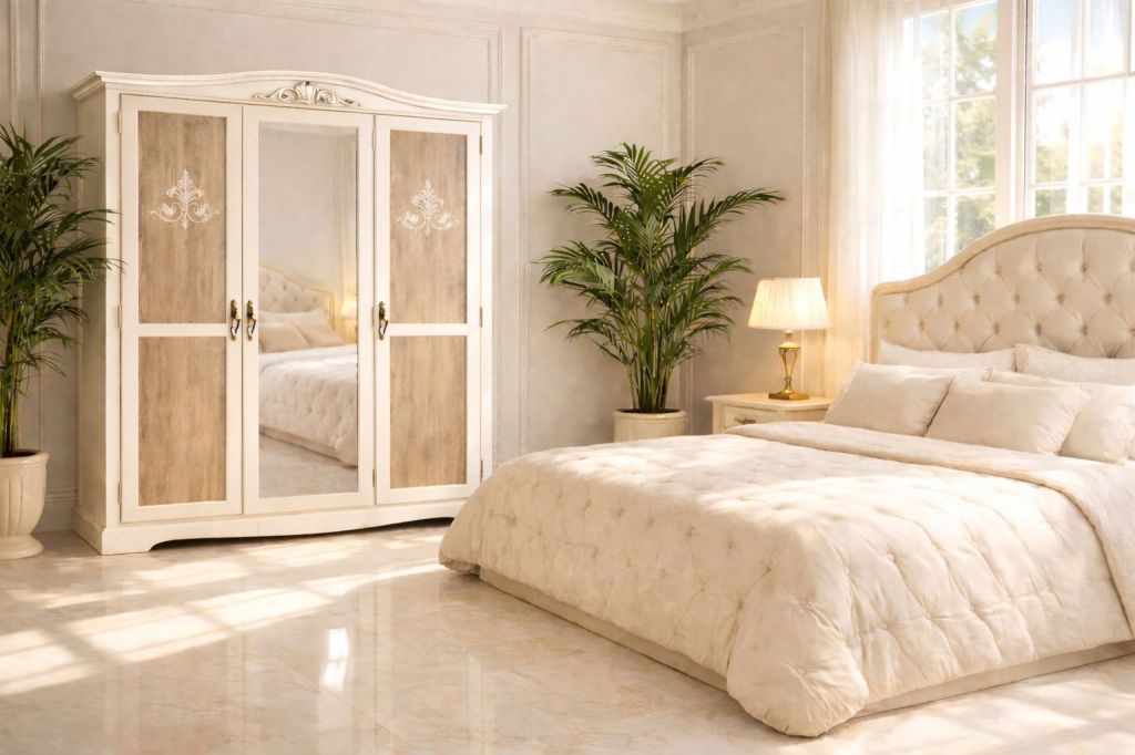 Soluzioni d’arredo per camere di charme: letti, comodini, comò, luci e complementi coordinati.